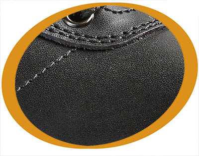 Water-repellent full-grain leather with pull-up finish. Excellent waterproofing of the leather, not even a drop of water after 7 hours of testing.